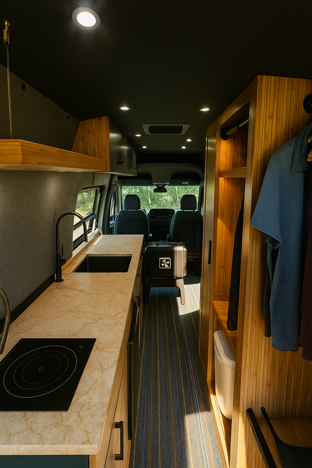 "The wet storage area for my surf gear is a game-changer. No more wet wetsuits in the living space! The van handles coastal conditions perfectly, and the solar setup keeps everything running even in remote locations."
